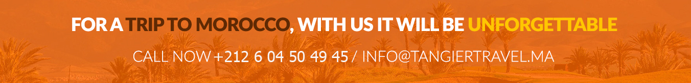 Welcome to TANGIER TRAVEL, site of exclusive tours, incredible experiences with special habits and tastes made of your budget measure. Independientemente of your destination, our company has long time of professional experience for travelers exigent. one of our specialities is to help our clients to coordinate their holiday and spend the most respected travel to exploring an exotic country like Morocco. Our goal is enjoying the most valuable asset natural and artistic heritage in the country. we offer a service of several programs at competitive prices. . seek to show the ancient traditions of hospitality of Morocco … we are full disposition of our customers 24 hours including guides and drivers.